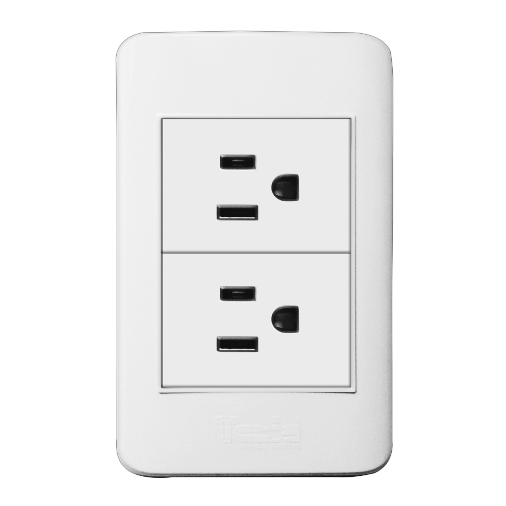 Toma Doble Con Tierra, 15A 125V,