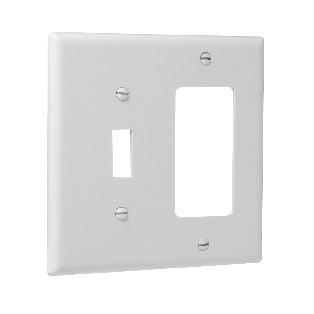 2-Gang Combination Wall Plate, 1 Toggle & 1 Decorator, Polycarbonate Thermoplastic